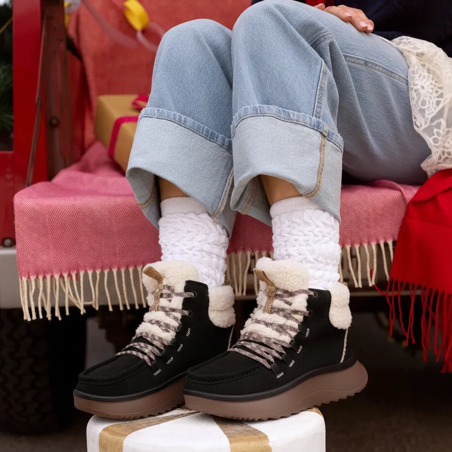 Een reden om te verlangen naar kou. Deze winterboots geven je het gemak van de Wendy instapper, maar dan in een warme, winterklare variant. Denk: iets hoger uitgevoerd, een suède buitenkant met zachte sherpa rondom de kraag en schoentong, en het vertrouwde HEYDUDE-gevoel - zó licht dat je bijna vergeet dat je ze draagt. Aantrekken gaat heel eenvoudig dankzij de elastische veters en aantreklusjes. Stap in, laat je voeten landen op het uitneembare foam voetbed en ervaar de zachtheid die net zo comfy aanvoelt als dat ze eruitzien. Lekker relaxed, helemaal HEYDUDE.
